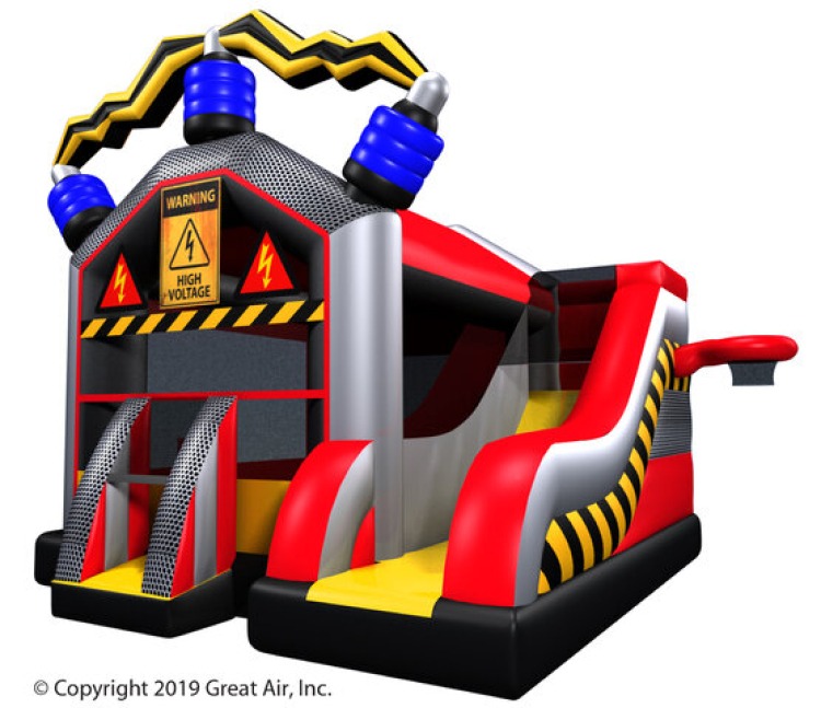- OCCUPANCY: A maximum of 5-6 kids of equal size at one time for bounce houses, and 1 person at a time for slides is what most inflatable manufacturers recommend.